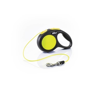 flexi New Neon infällbar ledning storlek XS , sladd 3 m, för hundar upp till 8 kg, svart/neongul