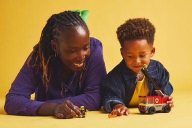 • Brandbilen har en 2-sitsig hytt och en höjbar stege för minifigurerna