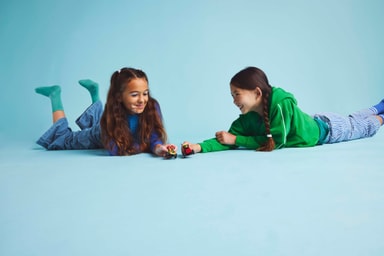 • Sätt förarminifigurerna i racerbilarna och låt det roliga börja