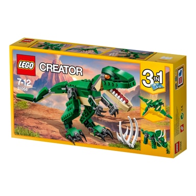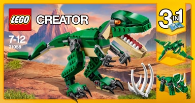 Skräm dina vänner med 3-i-1-modellen av mäktiga dinosaurier, T. rex, med rörliga klor och en öppningsbar mun med spetsiga tänder. Kan byggas om till en Triceratops eller en Pterodactylus.Läs mer om produkten