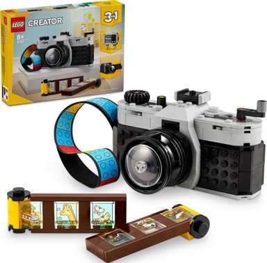 Detta LEGO Creator 3in1 set med retroteknik låter barn bygga en retrokamera och sedan bygga om den till en filmkamera eller en tv för fantasifull lek och uppvisning.Läs mer om produkten