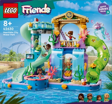 Detta LEGO Friends set har en byggbar vattenpark, 3 minidockor, en mikrodocka, 3 rutschkanor, en roterande virvelpool och tillbehör för kreativ lek.Läs mer om produkten