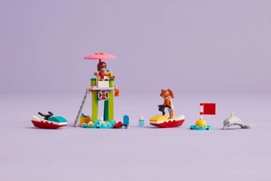 • Byggset med strandvaktstema, med 2 minidockor och en delfinfigur