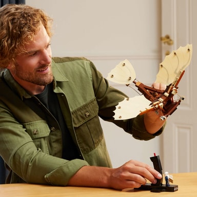 • Ornithoptermodell med visningsställ och en minifigur av Leonardo da Vinci