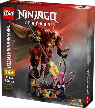 NINJAGO modell för uppvisning och berättande med en rörlig eldriddarrobot som slåss mot ett monster med rörliga tentakler som dyker upp ur havet.Läs mer om produkten