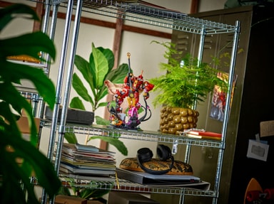 • Visa upp eldriddarroboten som kämpar mot ett havsmonster på en hylla eller nattduksbord