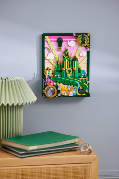 • Emerald City – Väggkonst är en fantasiprydnad med 6 minifigurer och dolda detaljer