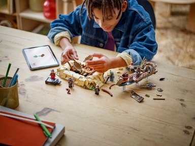 • Setet innehåller en sarlaccgrop och en byggbar Star Wars ökenbåt