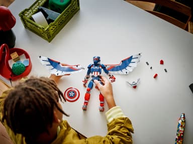 En autentiskt detaljerad, rörlig LEGO Marvel Byggfigur – Nya Captain America med den ikoniska skölden, vingarna och en Redwing-drönare.Läs mer om produkten