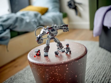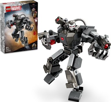 Byggbar LEGO Marvel War Machine robotfigur, helt ledad för dynamisk action, med 3 knoppkanoner, ammunitionsfack på ryggen och en minifigurpilot.Läs mer om produkten