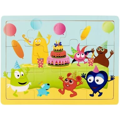 Gediget träpussel med motiv från Babblarnas värld, Babblarna på kalas