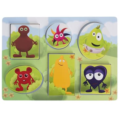 Pusslet är tillverkat i trä och föreställer de sex Babblarna i olika färger. Lyft på pusselbitarna för att se vem som gömmer sig i buskarna!