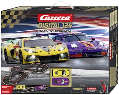 Digital bilbana i skala 1:24 med en Porsche 911 RSR bil och en Chevrolet Corvette C8. R i skala 1:24. Banlängd på 9,3 meter med lång bro och två växelspår.Läs mer om produkten