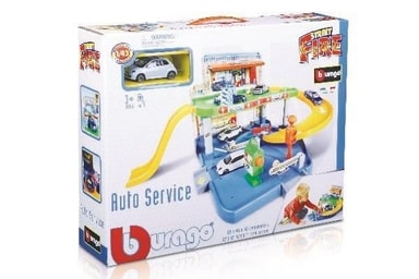 Massor av lekmöjligheter med denna vackra servicestation i skala 1:43 som passar de klassiska Burago-bilarna. Bensinstationen är utrustad med biltvättar, ramper och bommar samt att du kan tanka din bil. 1 bil i rätt skala ingår.