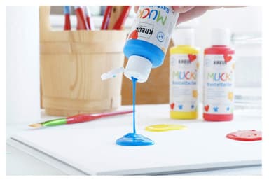 Vattenbaserad - fri från parabener.Alla färger kan blandas till nya färger.Späd med vatten.Redo att använda.Torkar snabbt.Ogenomskinlig.Läs mer om produkten