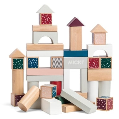 Byggklossarna från Micki är klassiska träleksaker som stimulerar barnens fantasi och utvecklar koordinationsförmågan. Olika former och färger ger oändliga lekmöjligheter! Vad ska du bygga av dina byggklossar? Ett staket runt leksaksdjurens hage, ett högt torn eller kanske ett hus som nallen kan bo i?