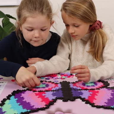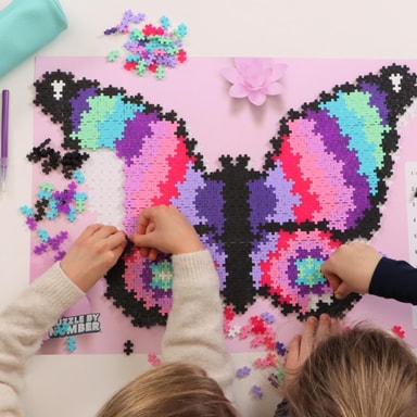 Puzzle By Number Butterfly kommer med 800 Plus-Plus och en stencil i 1:1 skala.