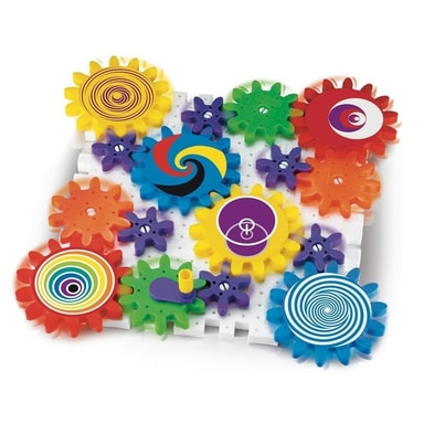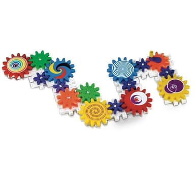 Innehåller 16 plattor som går att fästa i varandra, 6 stora kugghjul, 4 mellanstora kugghjul, 6 små kugghjul, 22 vita axlar, 1 vev och 6 klistermärken.