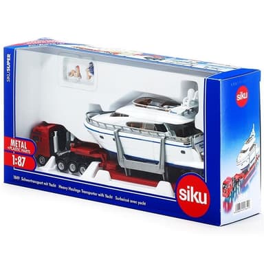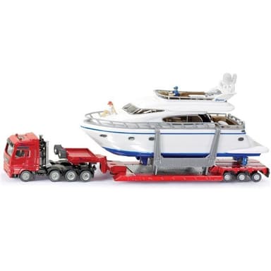 MAN tung transport med platt-släp tar enkelt hand om denna yacht
