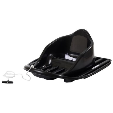 Bra högt ryggstöd förstärker stabilitetskänslan. Bakom ryggen och under rumpan finns dynor som gör att barnet håller värmen bättre. Naturligtvis finns det draglina för mamma och pappa när färden går uppför.