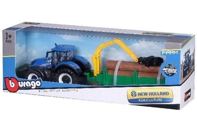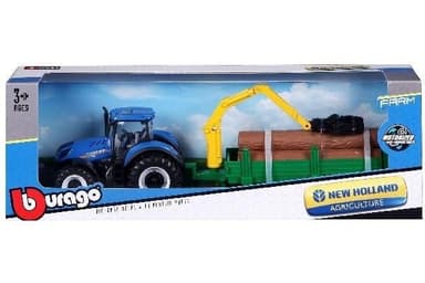 Tractor w/tree frowarder N.H. T7.615 10cm blue