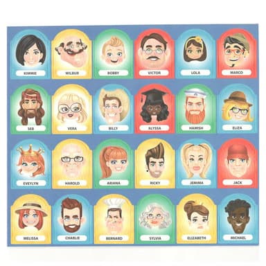 Hur man spelar: Det går ut på att spelaren i hemlighet ska välja karaktärer och sedan ska motståndaren gissa namnen på motpartens karaktärer.