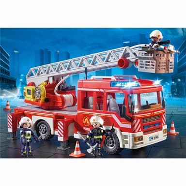 Fjärrstyrt fordon med förlängningsbar stege, ljus och ljud (kräver 2 x 1,5 V-mikrobatterier). Med utdragbara stöd. Upp till fyra figurer kan sitta i förarhytten. Mått: 39 x 13 x 17 cm (LxDxH).