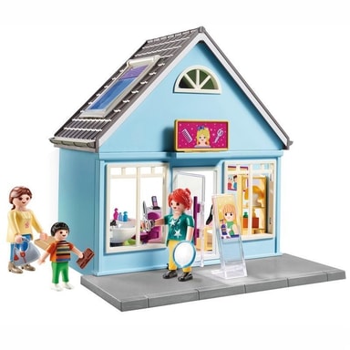 Den vänliga hårfrisörskan kan alla de senaste frisyrtrenderna och har alltid de bästa sminktipsen. Sätt dig en stund"", säger stylisten till sina kunder. Sen diskuteras frisyren utförligt. Håret ska inte bara klippas utan också färgas. Men det måste passa bra. Inga problem för den erfarna hårfrisörskan. Då sätter vi igång! Frisörsalongen har flera hyllor för peruker, hårförlängningar och smink, samt en frisörstol med rörligt ryggstöd, en disk och en hylla på rullar. Borste, sopskyffel och handborste för rengöring av salongen medföljer. Med de medföljande dekalerna kan affärens inner- och ytterväggar när som helst dekoreras om.
