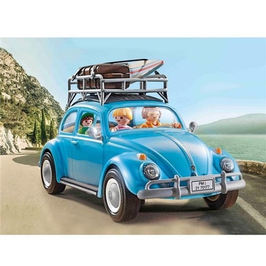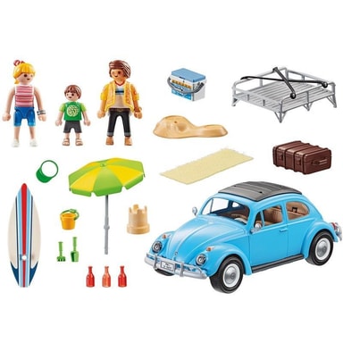 - Leksetet innehåller tre PLAYMOBIL-figurer,en Volkswagen Käfer från PLAYMOBIL med takräcke, avtagbart tak och en baklucka som kan öppnas, surfbräda, kylbox, sandleksaker och många andra accessoarer.