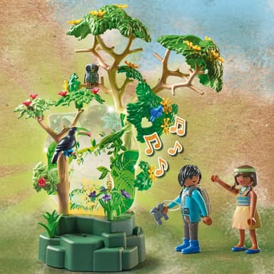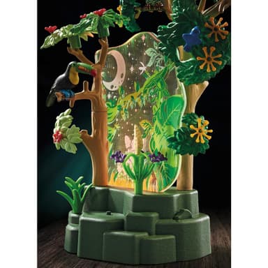 Uppsättningen innehåller två PLAYMOBIL-figurer Alina da Silva och Rick Palmer, en nattlampa med regnskogsljud, två motivskivor att byta, en tukan, en uggla, ett djurkunskapskort tukan och andra spännande extra saker!