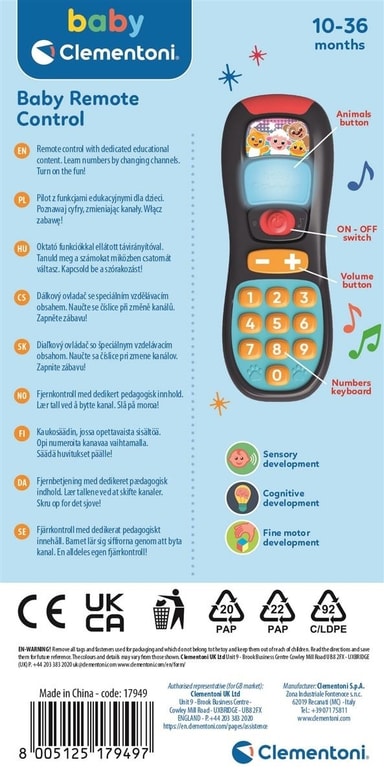 Med 10 knappar som lär ut de första siffrorna, 2 volymknappar och 4 färgade maxiknappar som guidar barnen i upptäckten av djur
