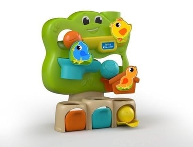 Ett roligt träd med många rutschkanor, bollar och dörrar som hjälper små barn att utveckla logiskt tänkande, förbättra sin koordination och förstå sambandet mellan orsak och verkan. Ett roligt bollfallspel tillverkat i Italien av återvunnen plast, i linje med Play For Futures strategi. De tre bollarna, som alla har olika storlek, faller ner i en trädstam och hamnar som genom ett trollslag bakom dörren i samma färg. Tränar manuella färdigheter (greppa bollen, öppna dörren), koordination mellan hand och öga (föra in bollarna genom hålet) och logiskt tänkande. En livlig, färgstark och underhållande design tack vare trädet som förvandlas till en rolig figur tillsammans med sina fågelvänner.