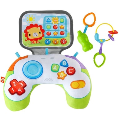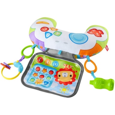 Den mjuka magkudden stöder ditt nyfödda barn och garanterar god komfort medan du njuter av lektiden med den sprakande skärmen, headsetskramlet och energidrycksskramlet som sitter fast på kudden. Din lilla spelare kan vässa sina grovmotoriska färdigheter och stimulera sinnena med roliga ljud och texturer medan han spelar på magen.