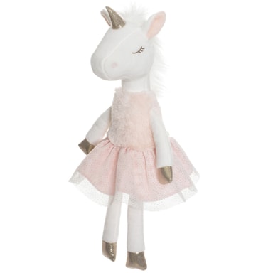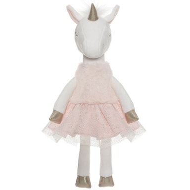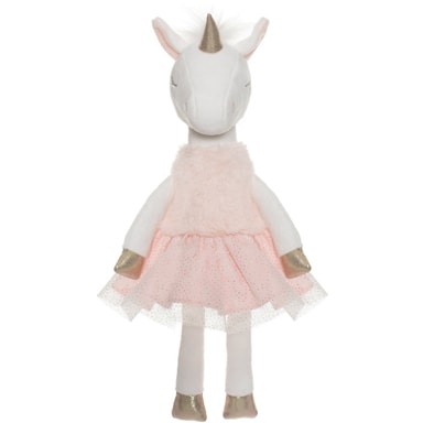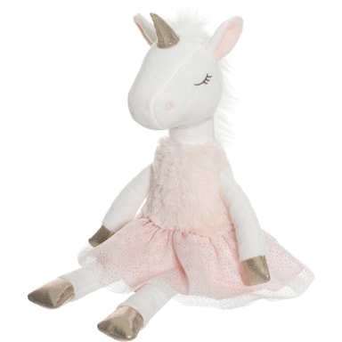 Söt enhörning med tyllkjol, pälstopp och guldiga ballerinaskor.