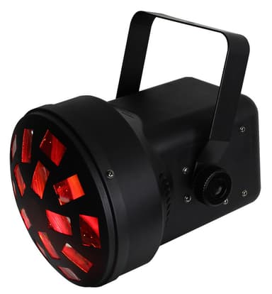 Flerfärgad multi-beam ljuseffekt.  6 x 3 watts LEDs: Röd, grön, blå, vit och amber.  Inbyggda auto ljusprogram.  Blinkar i takt till musikken i ljudstyrt läge. Läs mer om produkten