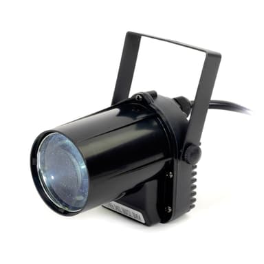 Liten och praktisk LED Pinspot, utrustad med en kraftfull 5W CREE LED. (Vitt ljus). 6 graders spridning. Många applikationer: discokulaspot, utställningar, spotbelysning etc. Monteringsfäste ingår.Läs mer om produkten