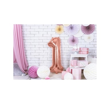 Folieballong. Nummer ""1"", roséguld. Storlek 34""/86 cmOuppblåst ballong.Läs mer om produkten