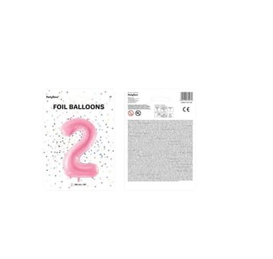 Folieballong. Nummer ""2"", pastellrosa. Storlek 34""/86 cmOuppblåst ballong.Läs mer om produkten