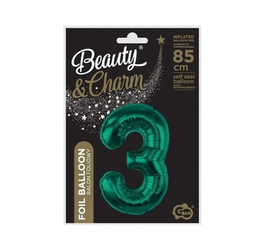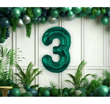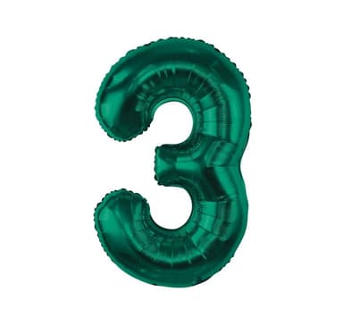 Folieballong. Nummer ""3"", grön. Storlek 33""/85 cmOuppblåst ballong.Läs mer om produkten