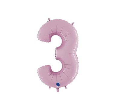 Folieballong. Nummer ""3"", pastellrosa. Storlek 26""/66 cmOuppblåst ballong.Läs mer om produkten