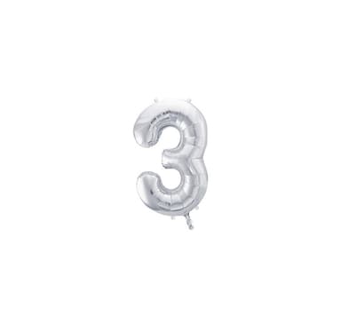 Folieballong. Nummer ""3"", silver. Storlek 34""/86 cmOuppblåst ballong.Läs mer om produkten