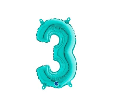 Folieballong. Nummer ""3"", tiffany. Storlek 40""/102 cmOuppblåst ballong.Läs mer om produkten