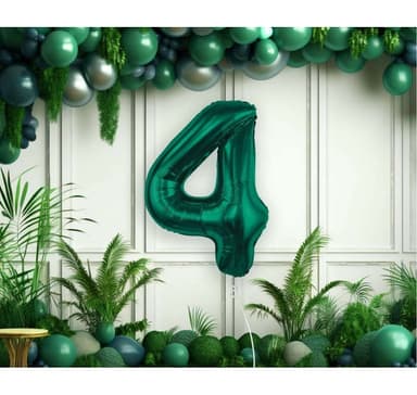 Folieballong. Nummer ""4"", grön. Storlek 33""/85 cmOuppblåst ballong.Läs mer om produkten