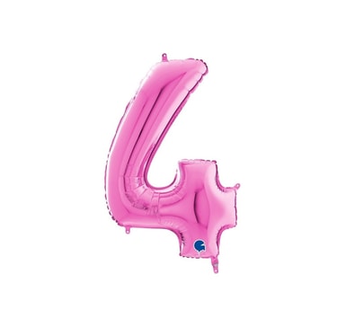 Folieballong. Nummer ""4"", rosa färg. Storlek 26""/66 cmOuppblåst ballong.Läs mer om produkten
