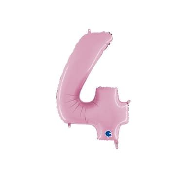 Folieballong. Nummer ""4"", pastellrosa. Storlek 26""/66 cmOuppblåst ballong.Läs mer om produkten