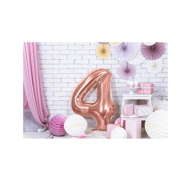 Folieballong. Nummer ""4"", roséguld. Storlek 34""/86 cmOuppblåst ballong.Läs mer om produkten