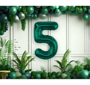 Folieballong. Nummer ""5"", grön. Storlek 33""/85 cmOuppblåst ballong.Läs mer om produkten