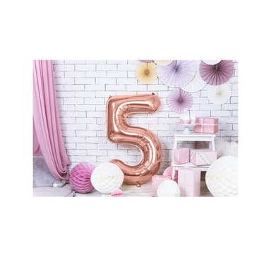 Folieballong. Nummer ""5"", roséguld. Storlek 34""/86 cmOuppblåst ballong.Läs mer om produkten