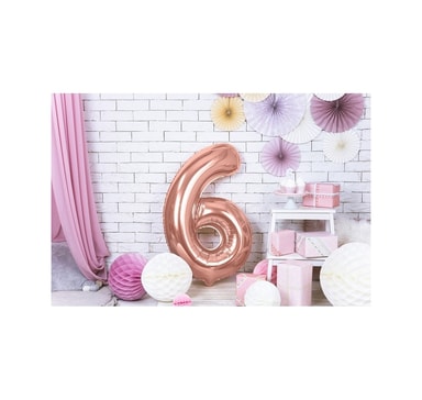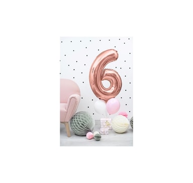 Folieballong. Nummer ""6"", roséguld. Storlek 34""/86 cmOuppblåst ballong.Läs mer om produkten