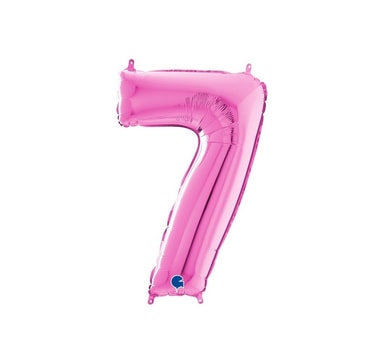 Folieballong. Nummer ""7"", rosa färg. Storlek 26""/66 cmOuppblåst ballong.Läs mer om produkten